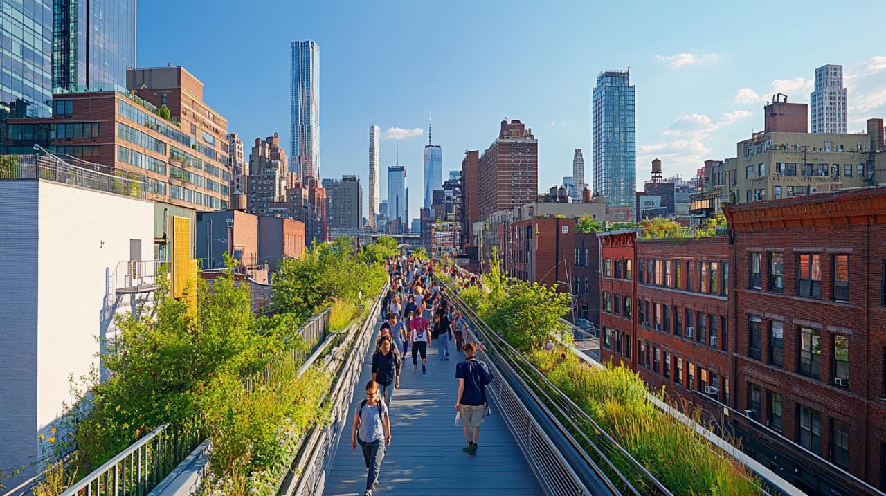 In the heart of Manhattan, an old railway line that once carried freight trains through the industrial landscape of the West Side has been reborn as one of the most celebrated public spaces in the world. The High Line stands as a remarkable example of how visionary urban planning and community determination can transform forgotten infrastructure into a vibrant green corridor that weaves through the city skyline. This elevated park, stretching for one and a half miles above the streets, has become a symbol of urban regeneration and a catalyst for economic and cultural transformation in New York City.